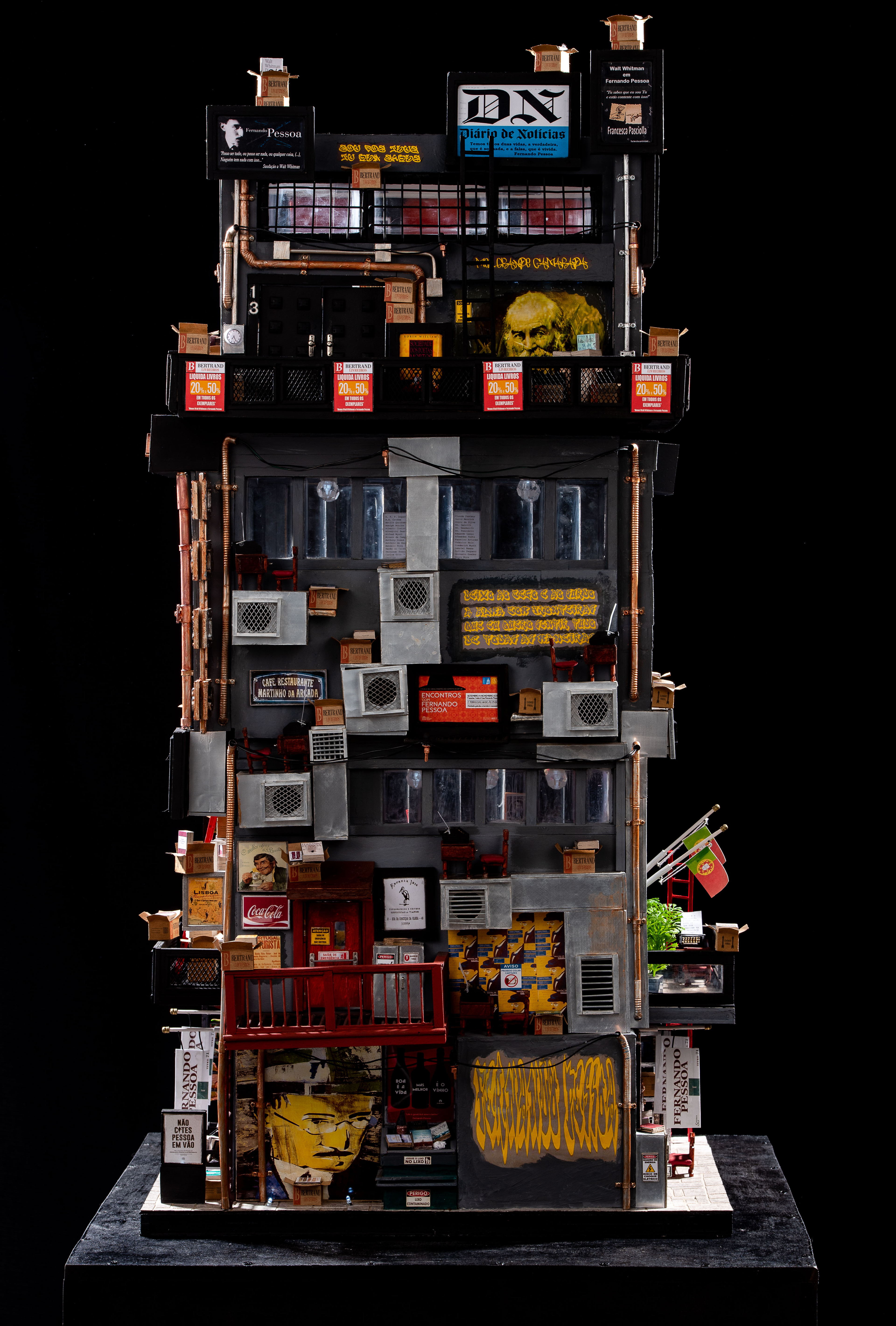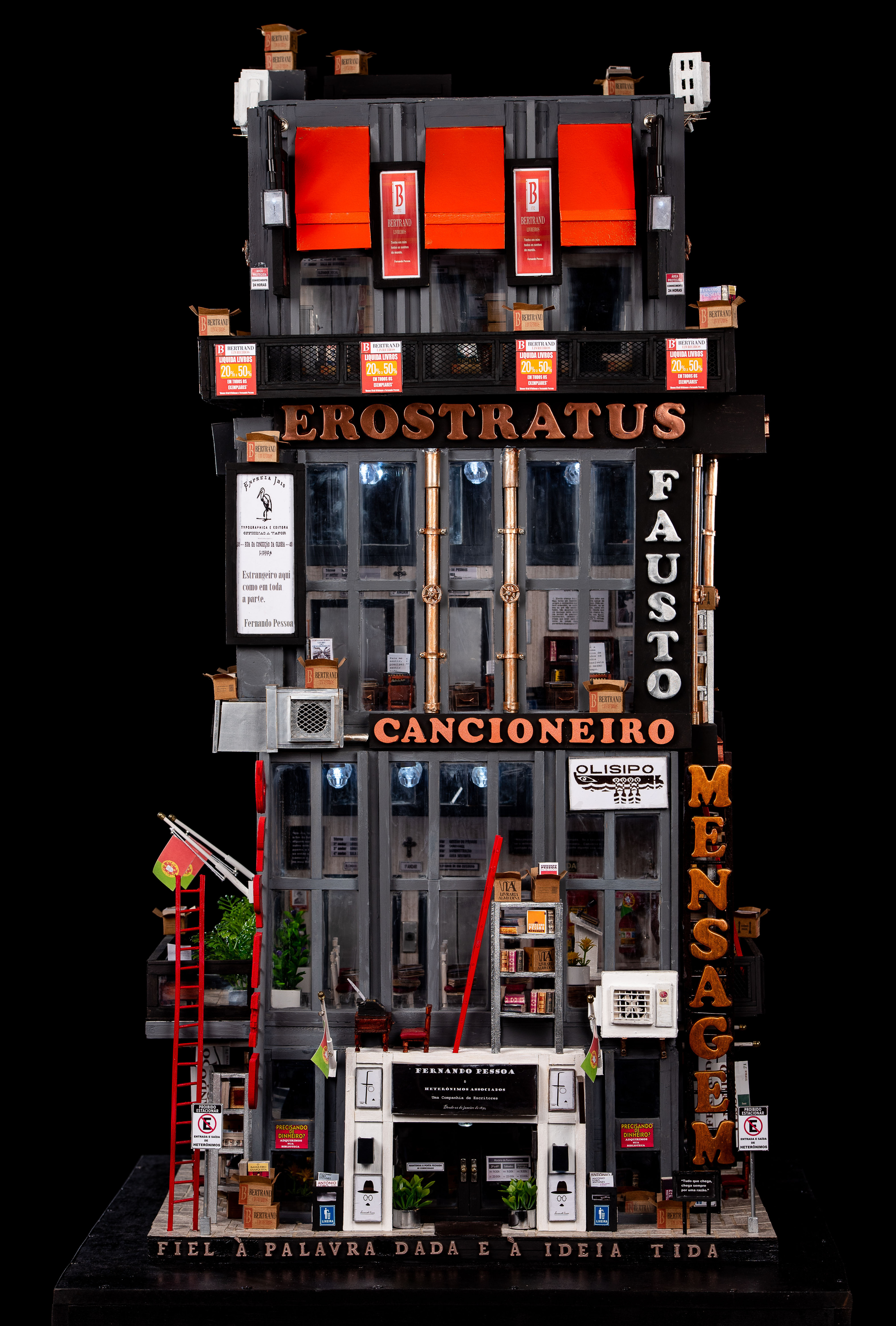 Construção Arquiliterária |Título: Fernando Pessoa - Ao Infinito e Além | Dimensões: 90x49x34cm | Técnica: Assemblage | Tipo: Escultura em Mídia Mista |Ano: 2021