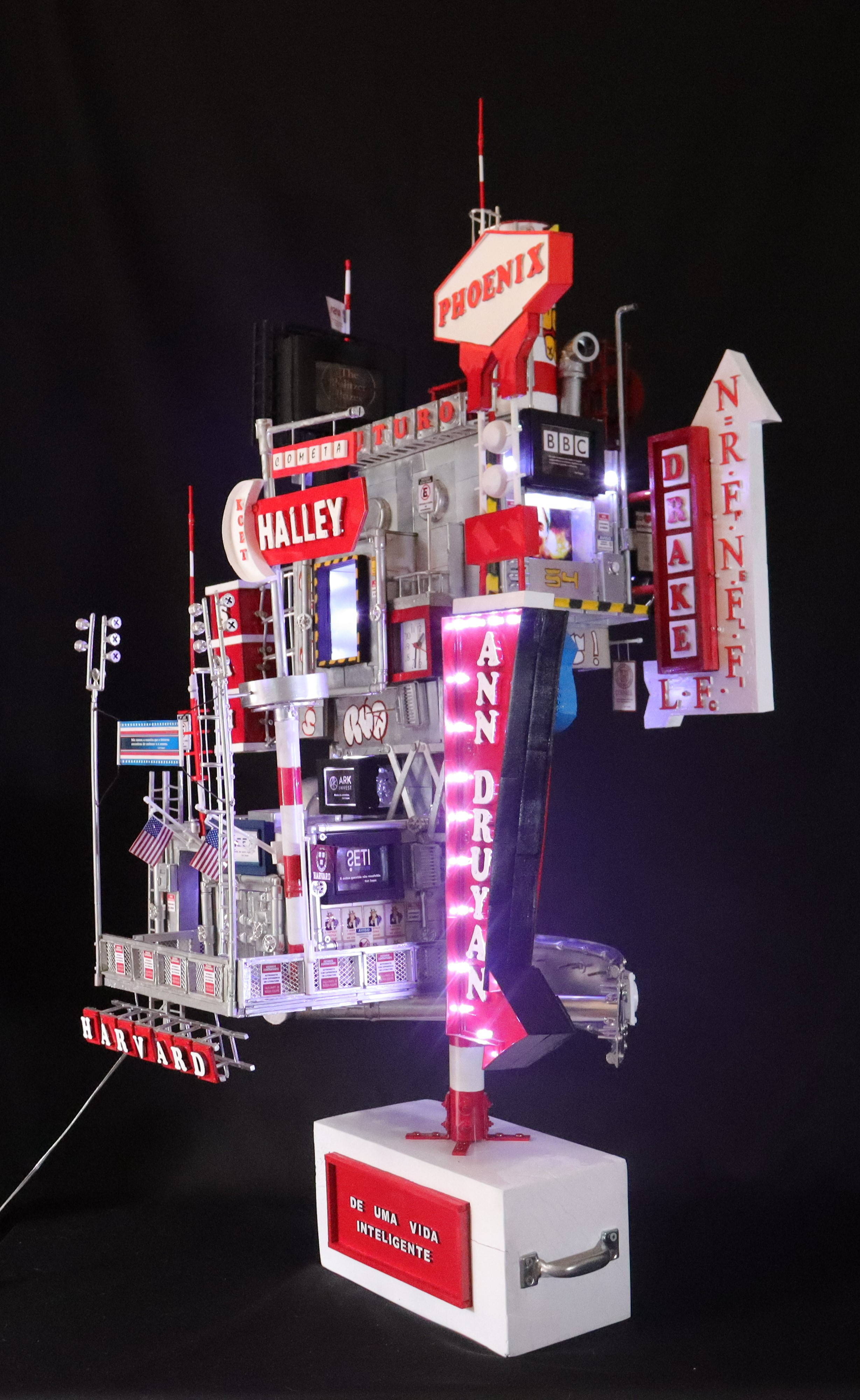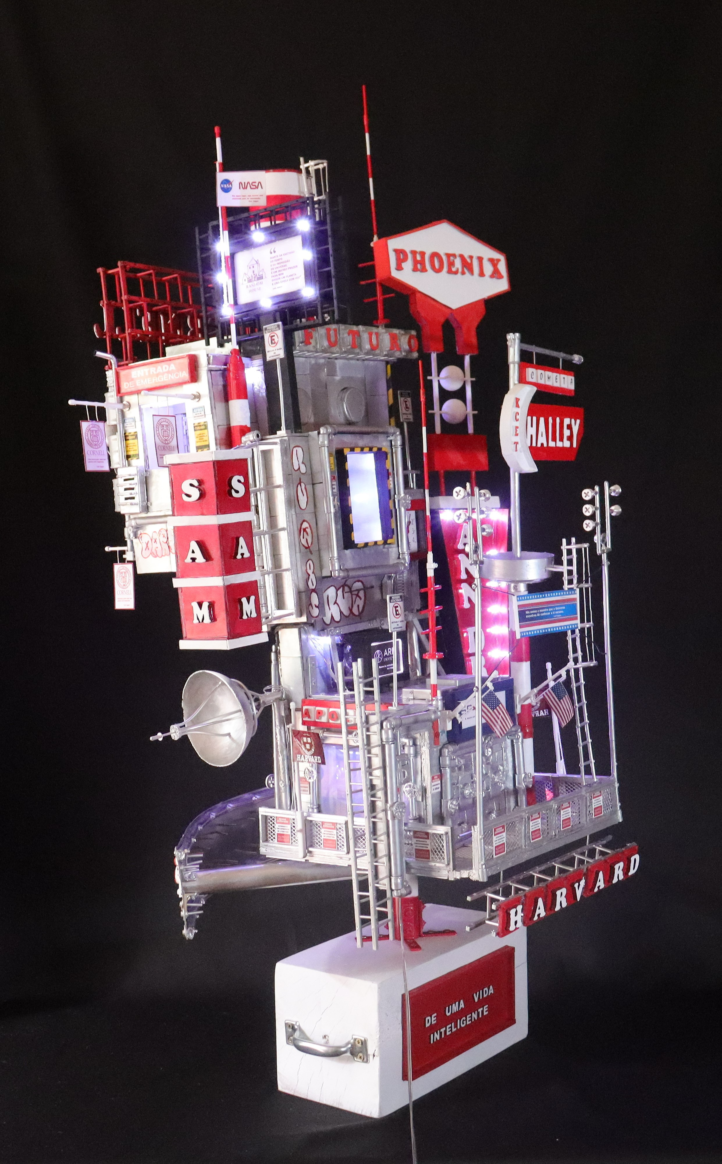 Construção Arquiliterária em andamento Título: Cornell - A Civilização Cósmica Dimensões: 115x55x55cm Técnica: Assemblage Tipo: Escultura em Mídia Mista Ano: 2022