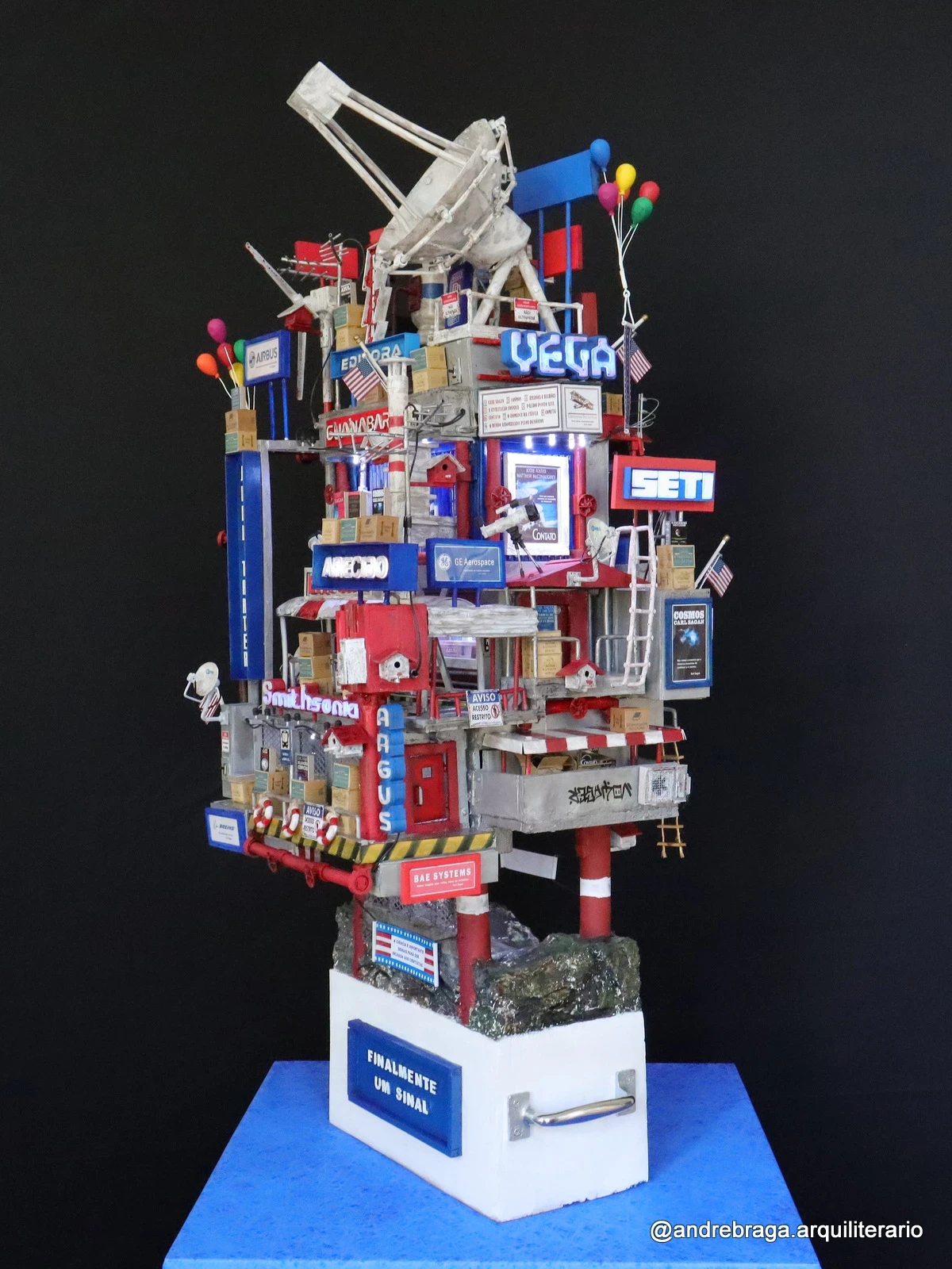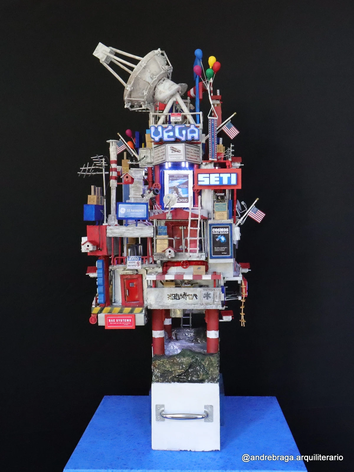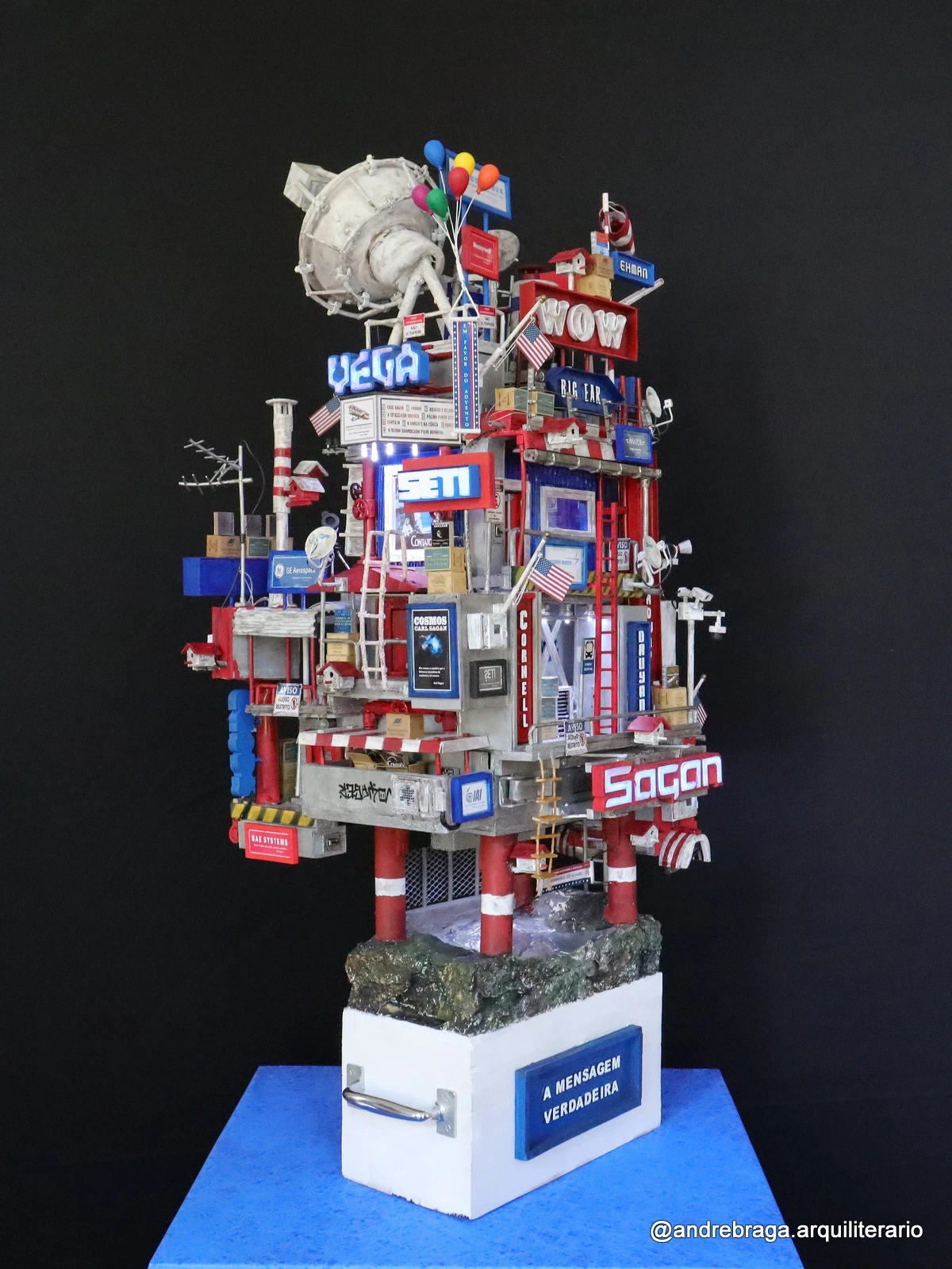 Construção Arquiliterária em andamento | Título: De Volta para Carl Sagan – O Último Contato | Obra da Série: Cosmos | Mais uma Peça Única e Exclusiva da Coleção: Troféus | Dimensões: 72x43x33cm | Técnica: Assemblage | Tipo: Escultura em Mídia Mista | Ano: 2025