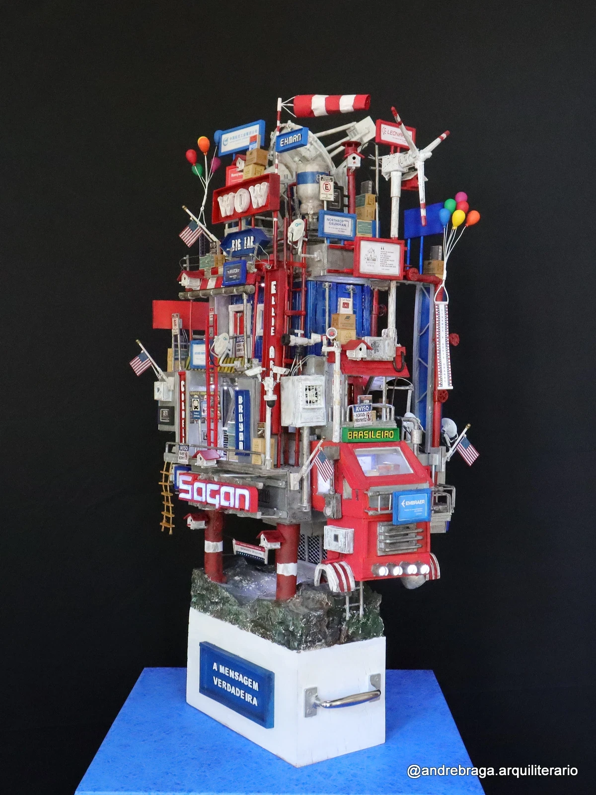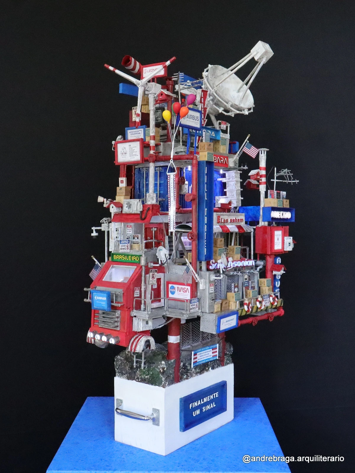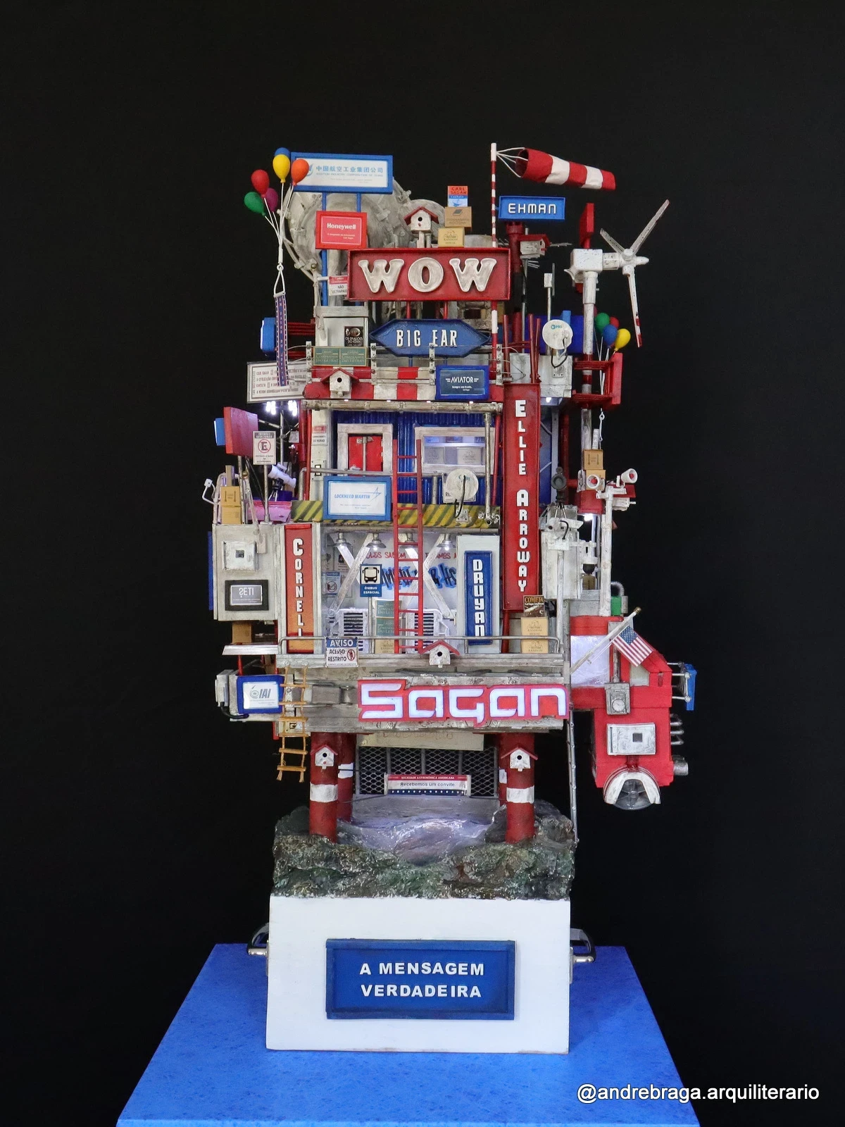 Construção Arquiliterária em andamento | Título: De Volta para Carl Sagan – O Último Contato | Obra da Série: Cosmos | Mais uma Peça Única e Exclusiva da Coleção: Troféus | Dimensões: 72x43x33cm | Técnica: Assemblage | Tipo: Escultura em Mídia Mista | Ano: 2025