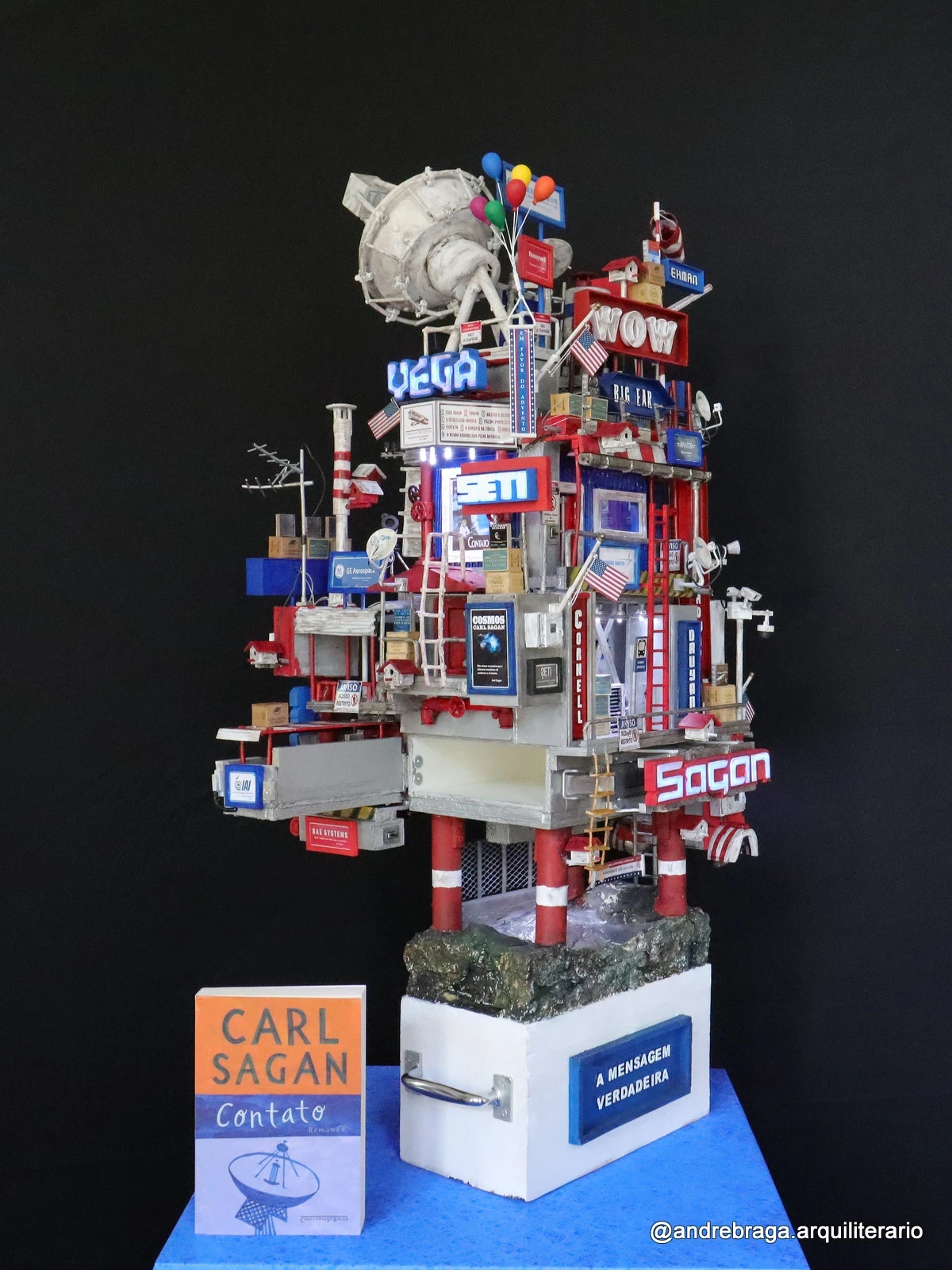 Como criação final de uma longa série, De Volta para Carl Sagan – O Último Contato tem como marca registrada o fato de ser a primeira construção arquiliterária em que comecei a criar um compartimento secreto para guardar um exemplar do livro que inspirou a obra. Assim como o famoso joalheiro russo Peter Carl Fabergé, que criava objetos luxuosos com itens valiosos escondidos em seu interior, minhas maquetes artísticas autorais são agora uma espécie de Ovo Fabergé, onde o proprietário da peça terá o privilégio não apenas de apreciar a escultura em toda sua forma e conteúdo, mas principalmente saberá que o texto que serviu de inspiração para sua criação encontra-se muito bem guardado em alguma parte oculta de sua estrutura, tornando minha arte muito mais especial e marcante, agora que une verdadeiramente arquitetura e literatura como objeto de surpresa, admiração e decoração. É a Arquiliteratura como expressão visual que se renova a cada novo projeto.
