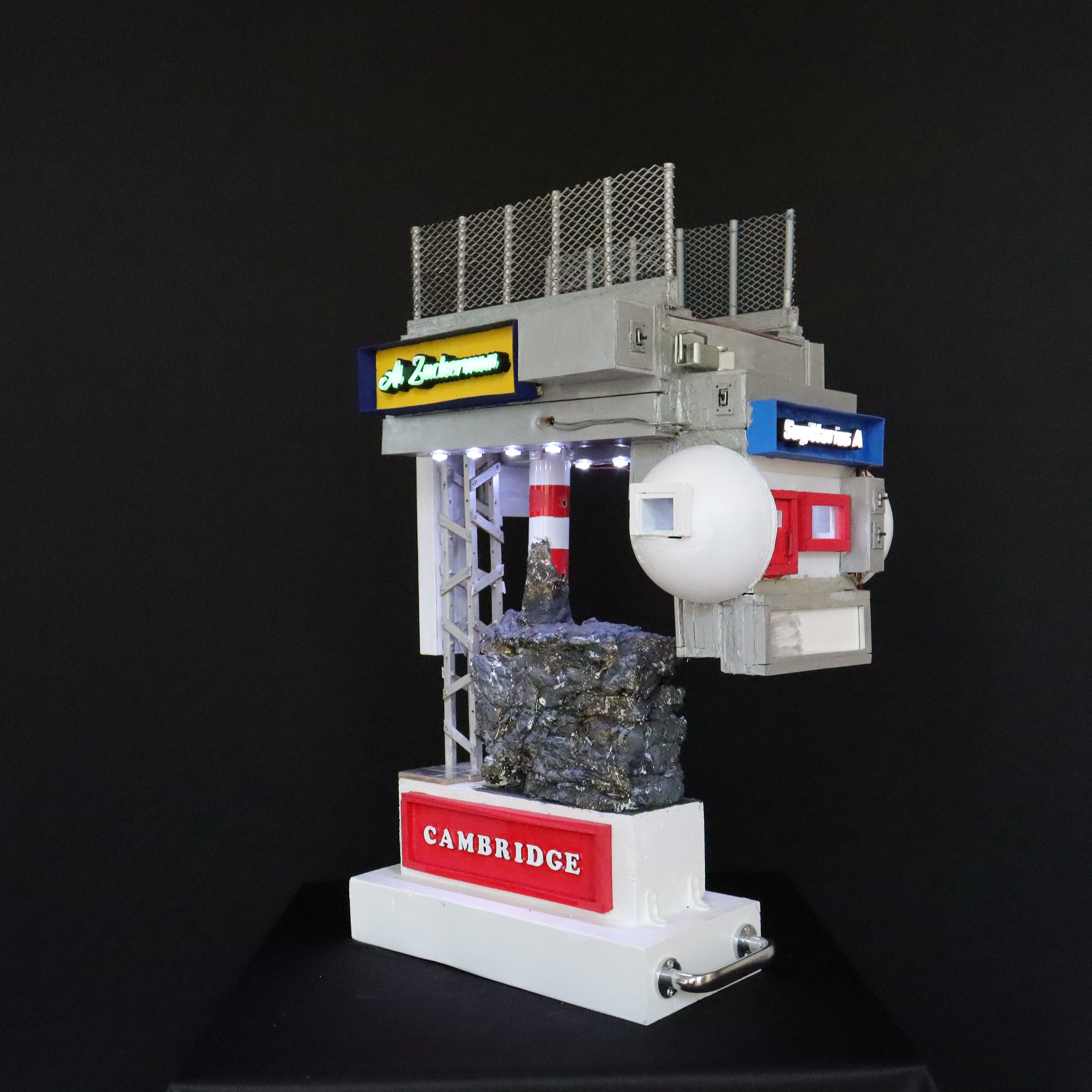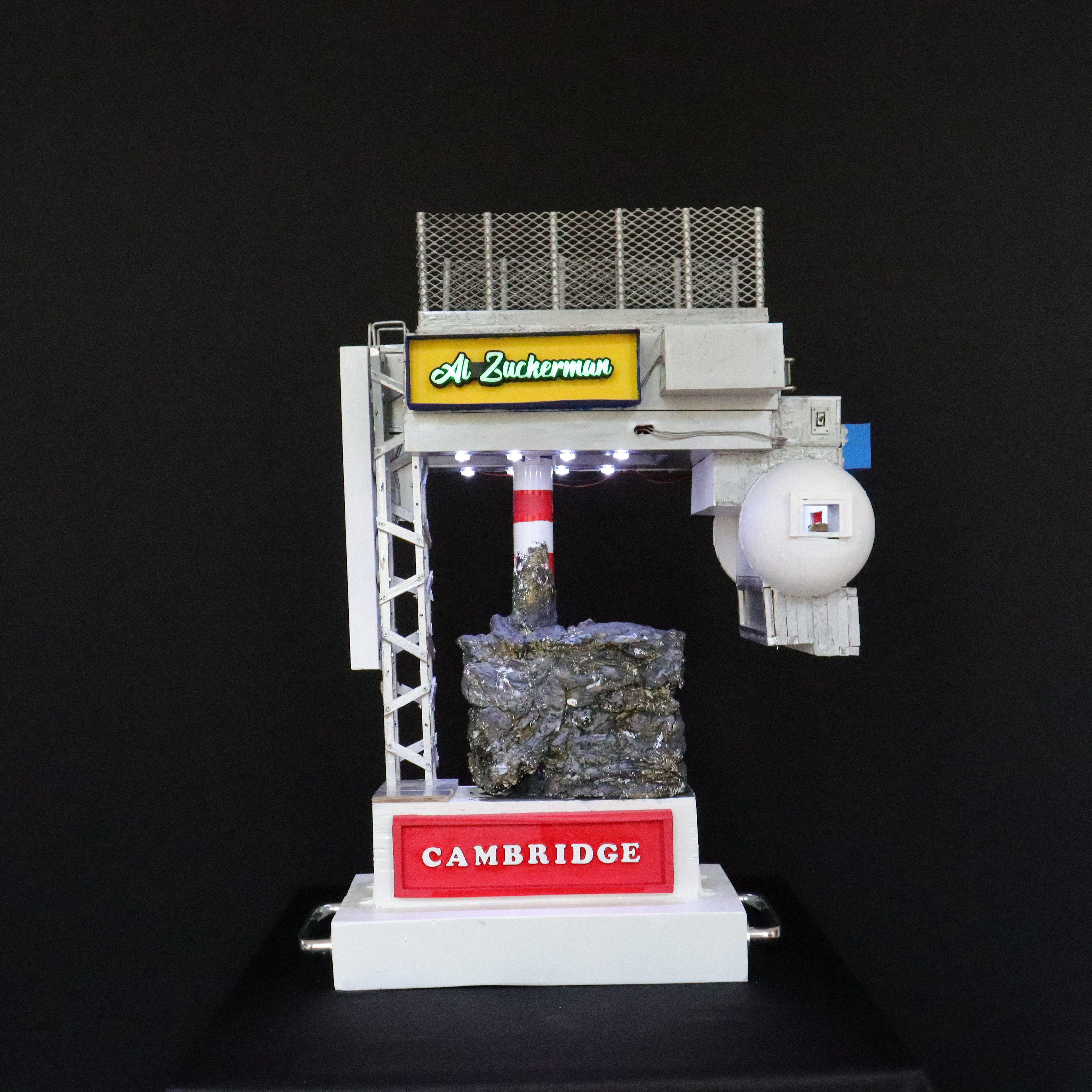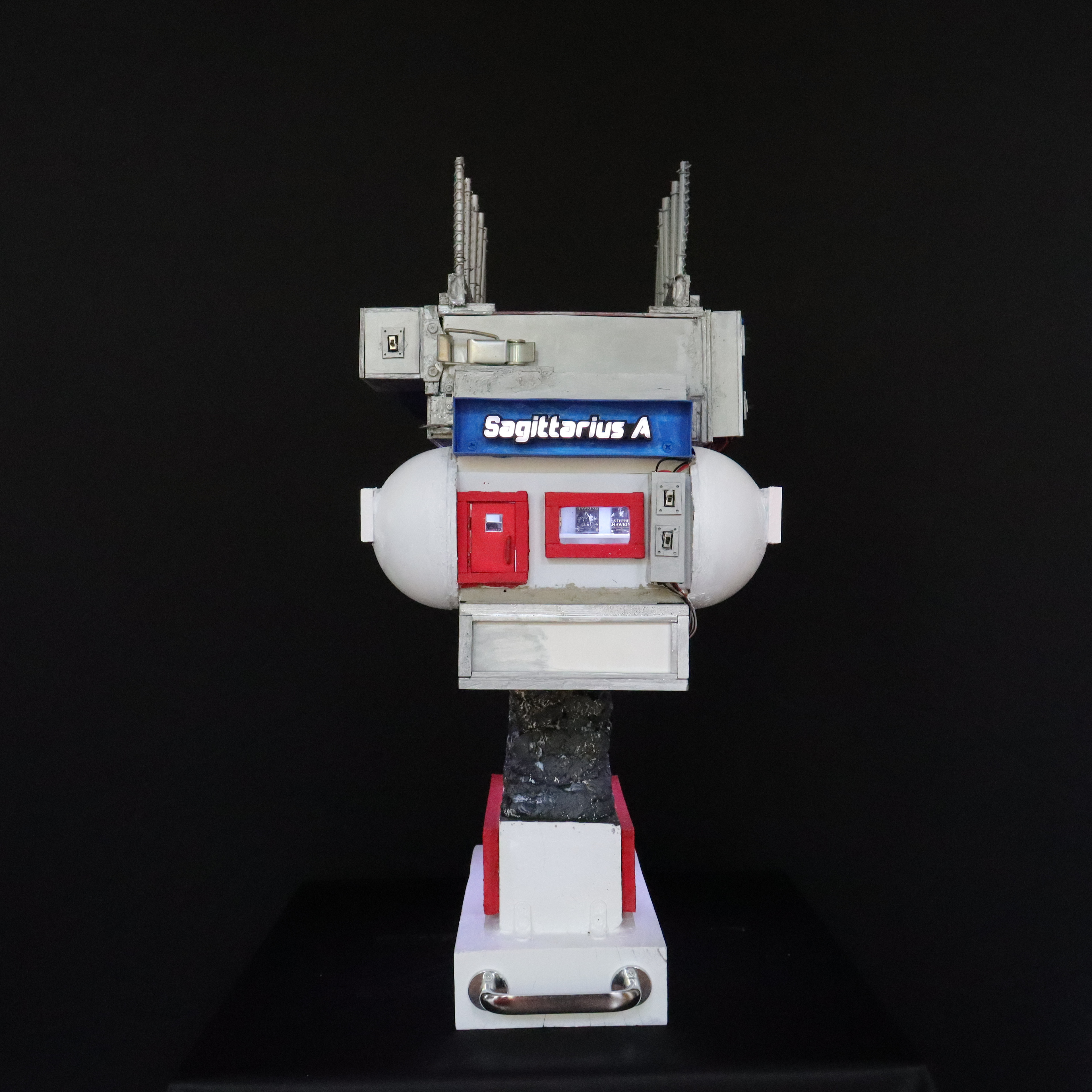 Construção Arquiliterária em andamento | Título: O Universo Numa Casa de Hawking – Uma Breve Arquiliteratura do Tempo | Obra da Série: Arquiliteratura Científica | Mais uma Peça da Coleção: Troféus | Dimensões: 72x43x33cm | Técnica: Assemblage | Tipo: Escultura em Mídia Mista | Ano: 2026
